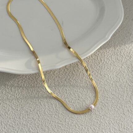 658 Single bead natural pearl gold snakebone necklace (Chain length: 45cm)