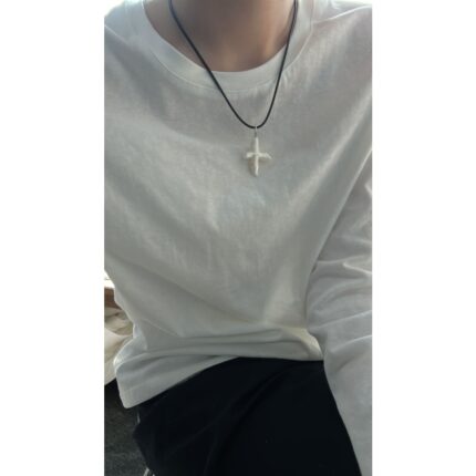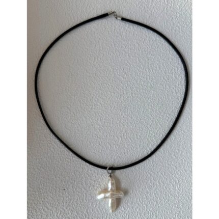 678 Cross natural pearl leather rope necklace