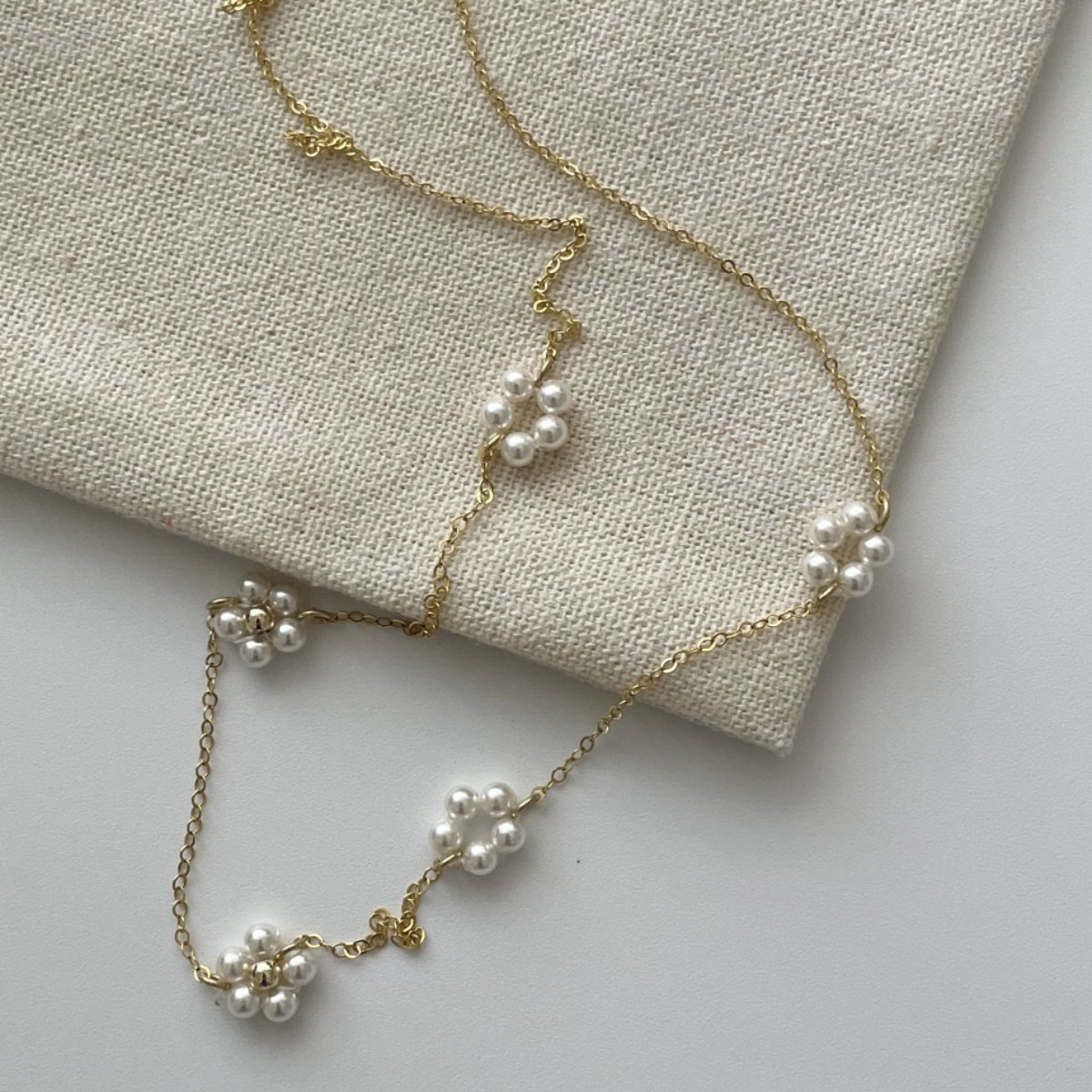 010 Simulated pearl little flower necklace (Chain length: 40cm)