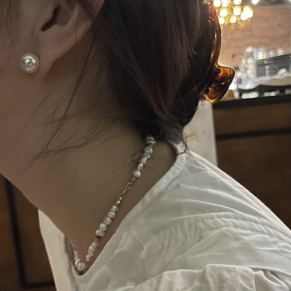 052 Baroque natural pearl chain necklace (Chain length: 45cm)