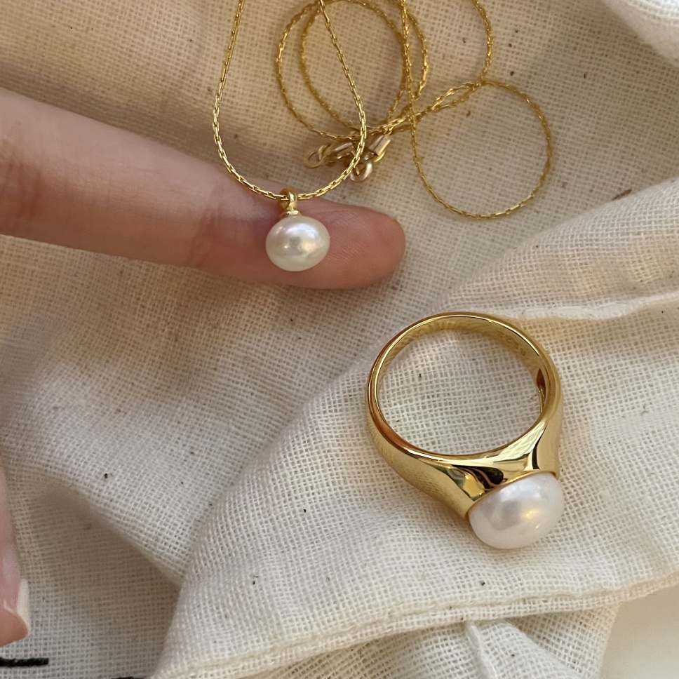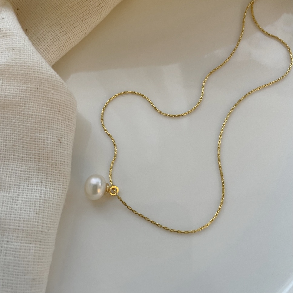 050 Dome bead natural pearl necklace (Chain length: 42cm)