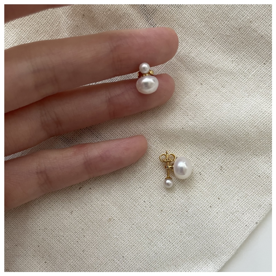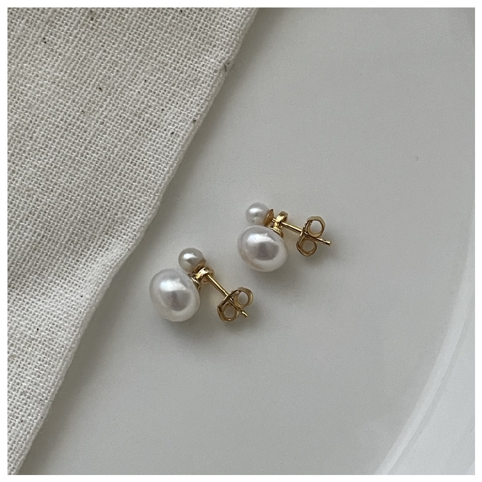 080 Double natural pearls earrings (Small bead: 2-3mm; Big beads: 7-8mm)