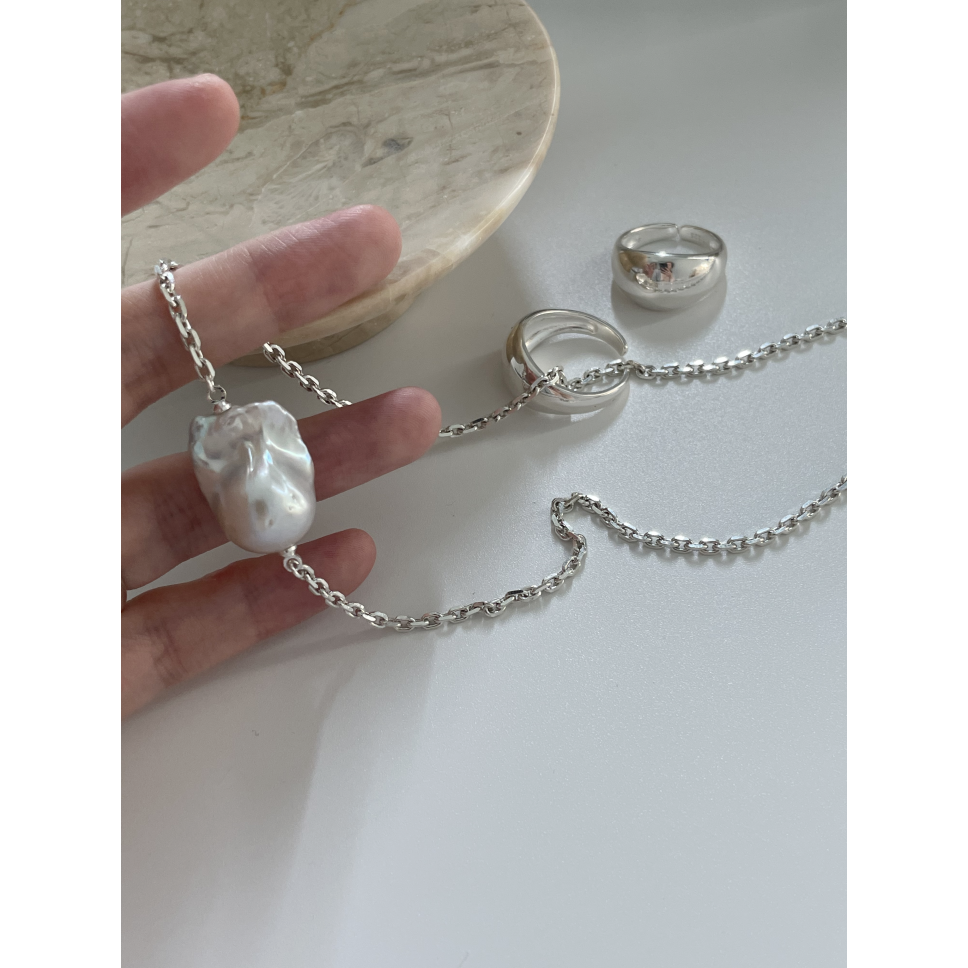 406 Sterling silver large Baroque natural pearl necklace (Chain length: 45cm)
