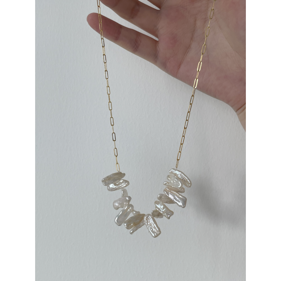 - Materia: American 14K gold filled+natural pearl. Chain lengt: 41cm