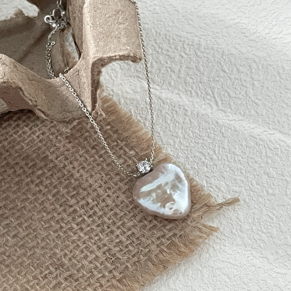 437 Love heart Baroque natural pearl simulated diamond necklace (Chain length: 45cm)