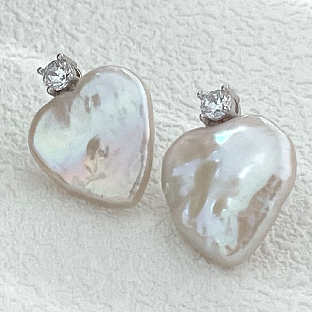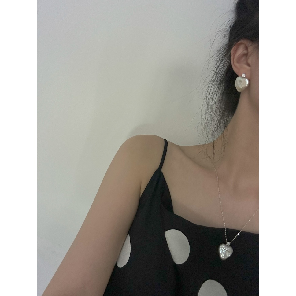 451 Love heart-shaped Baroque natural pearl and simulated diamond Earring