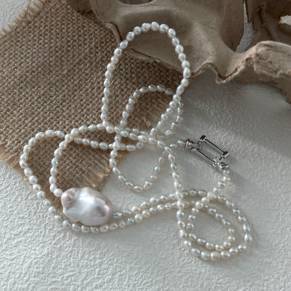 474 Large Baroque natural pearl double-layer necklace (Chain length: 86-88cm)