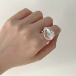 567 Nearly circular natural pearl and simulated diamond ring (pearl diameter: 8-9mm)