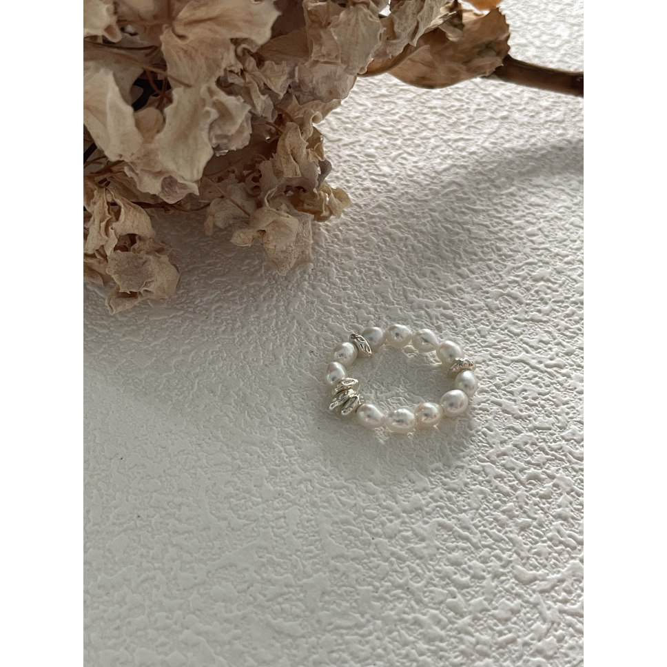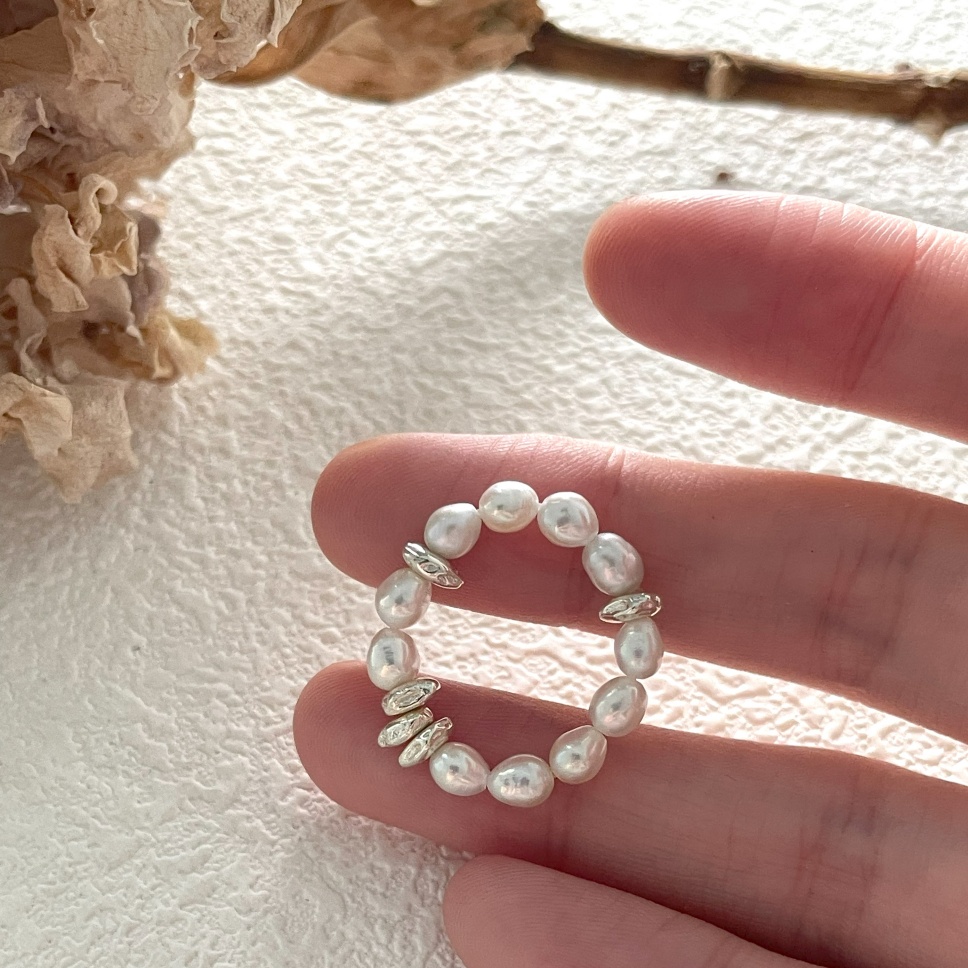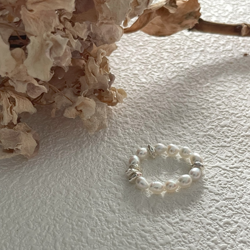 509 Mini bean natural pearls sterling silver elastic ring