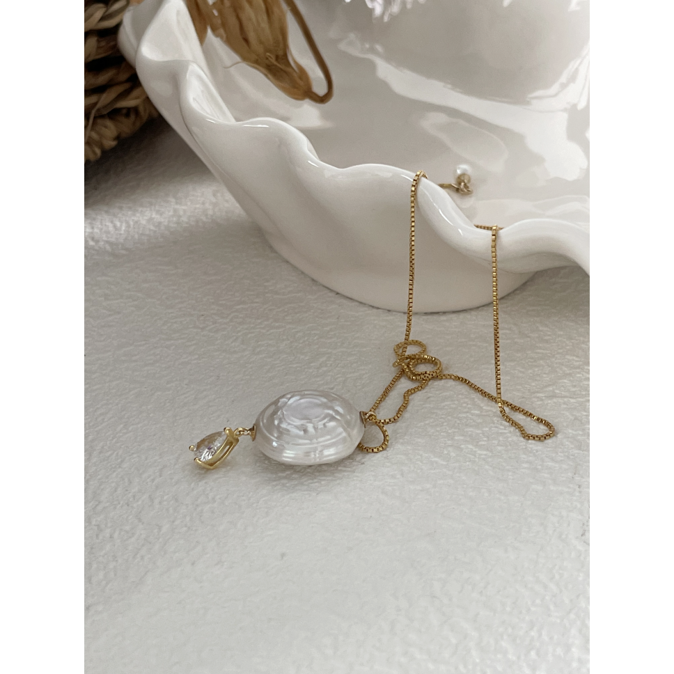 - Materia: US 14K gold filled hardware+simulated diamond+silver plated 18K gold chain+natural pearl. Chain lengt: 50cm