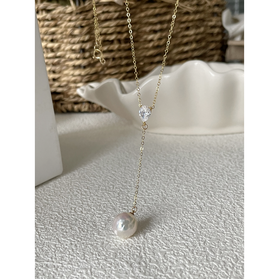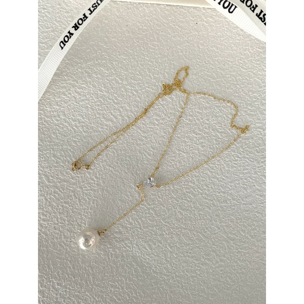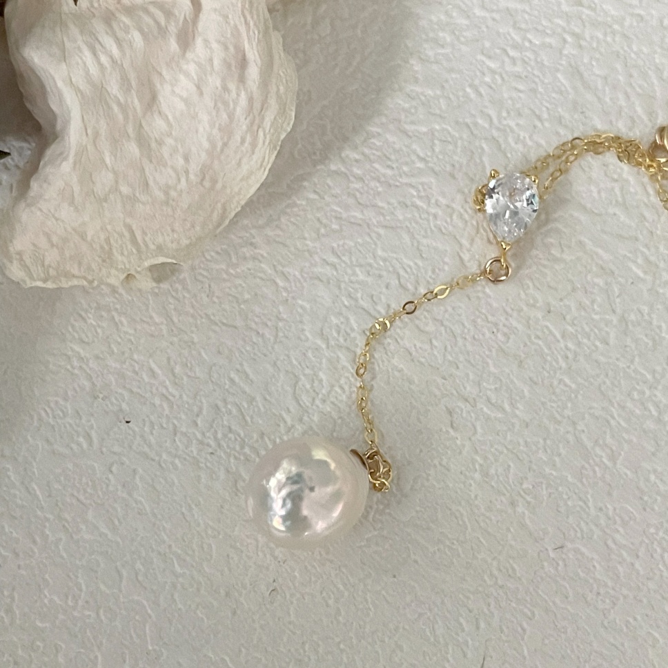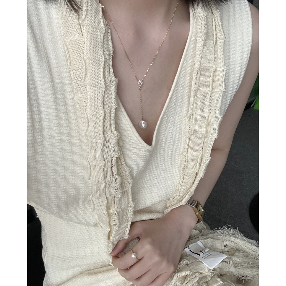563 Tin brightness Baroque natural pearl simulated diamond necklace (Chain length: 42cm+6cm, including beads)
