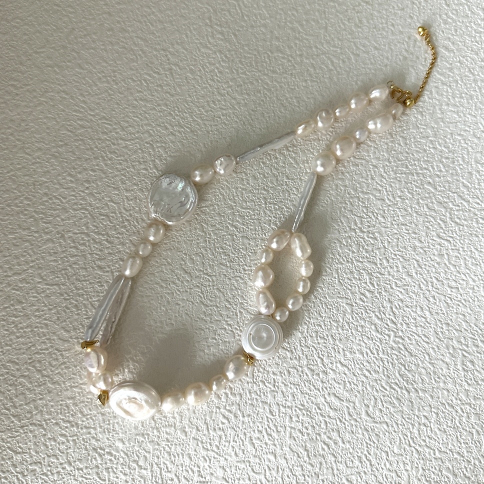 576 French choker natural pearl necklace (Chain length: 34+5cm)