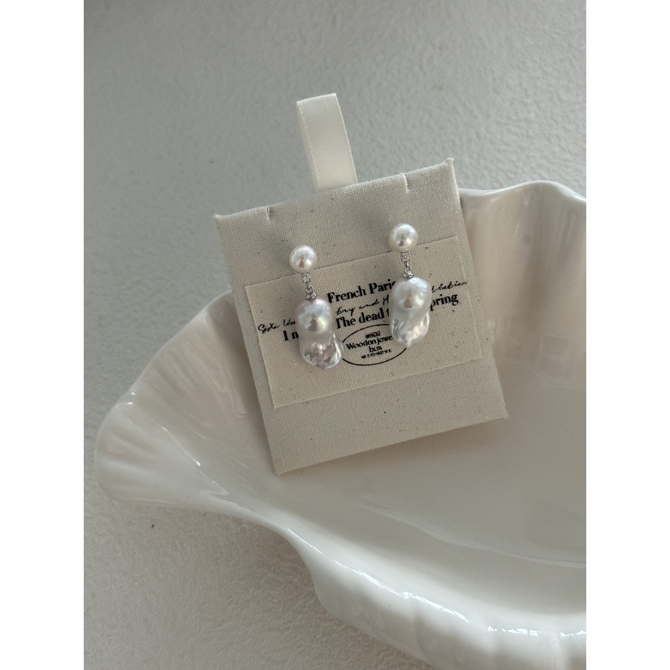590 Mini pearl and small Baroque natural pearl earrings