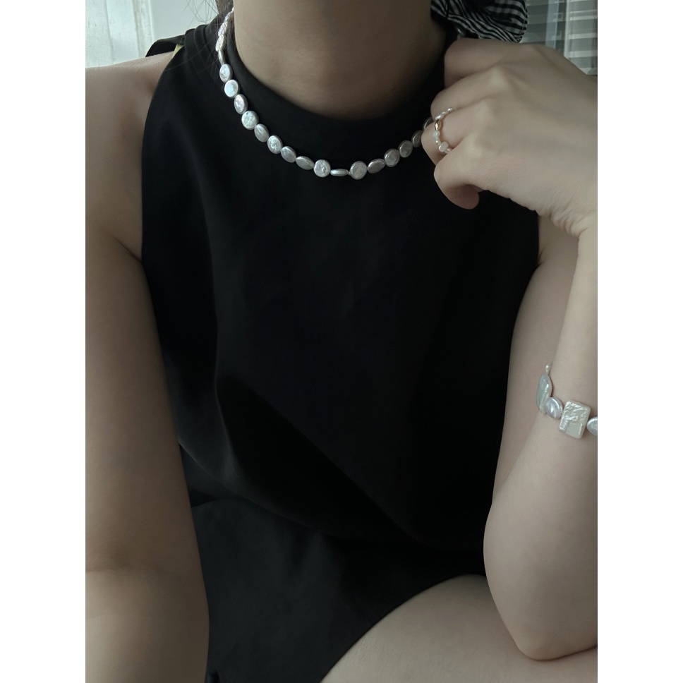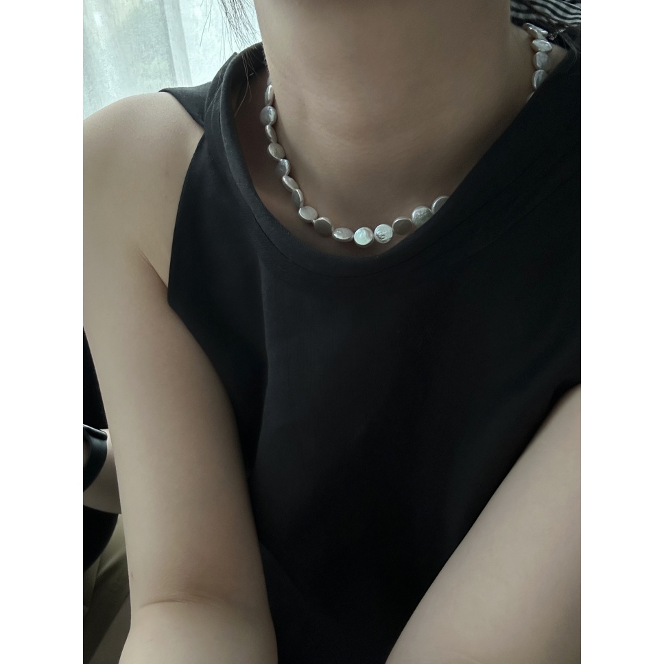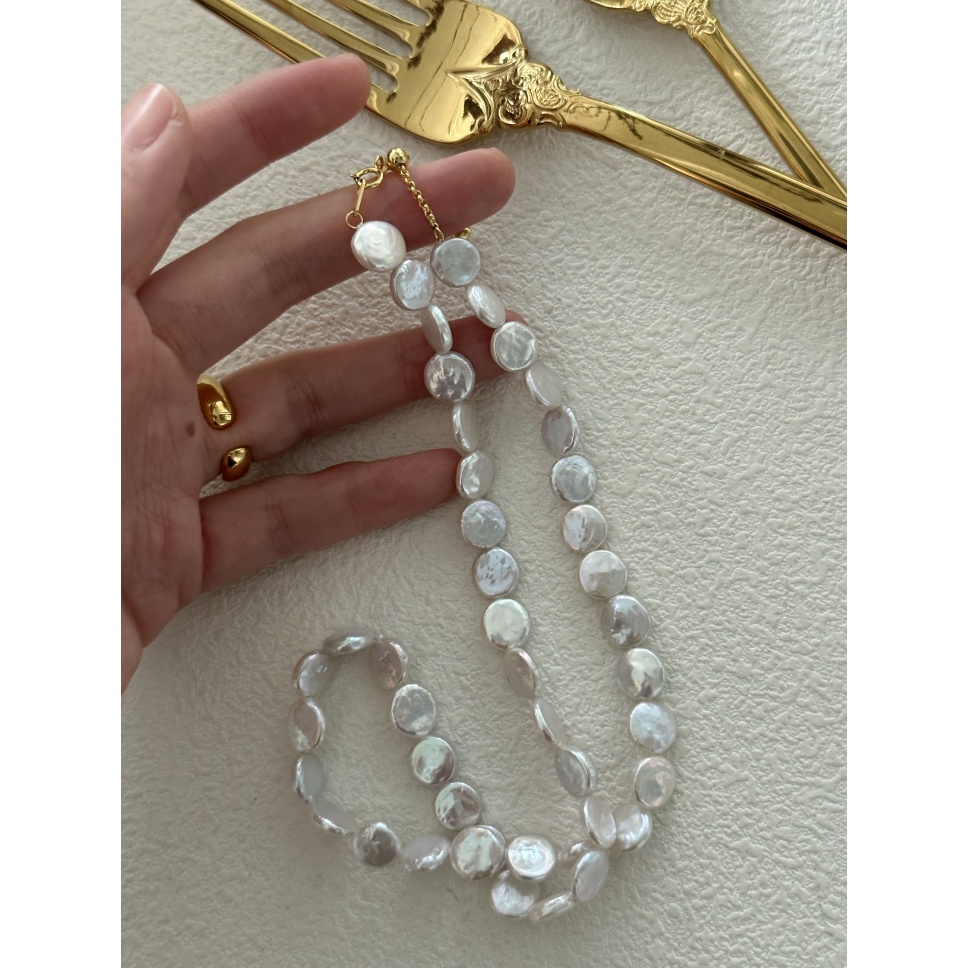 597 Small round Baroque natural peals necklace (Chain length: 39+5cm)