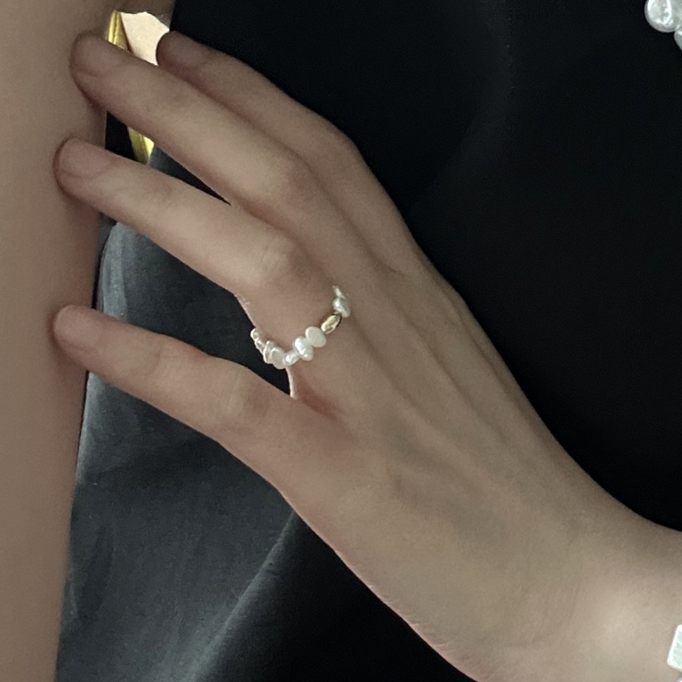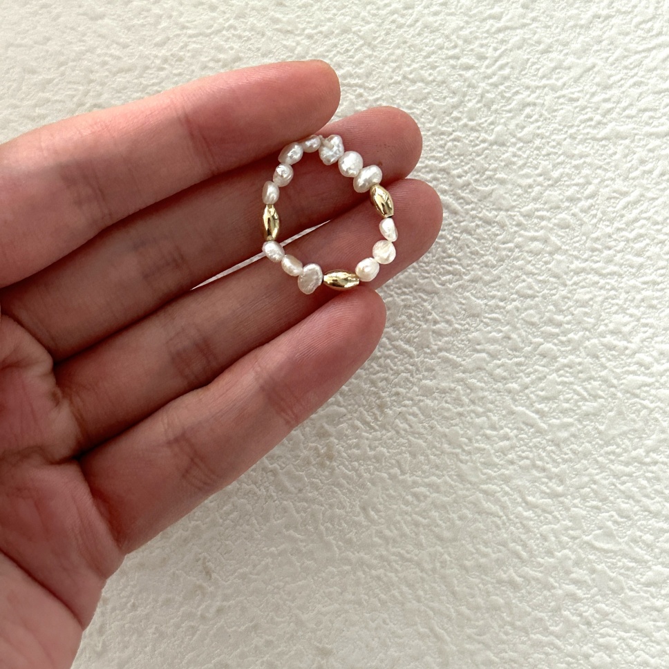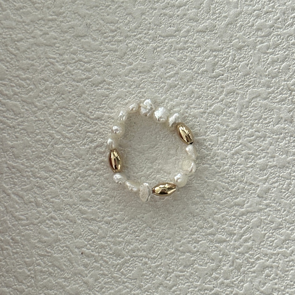 Be the first to review “604 Freshwater pearls gold bead elastic small ring”