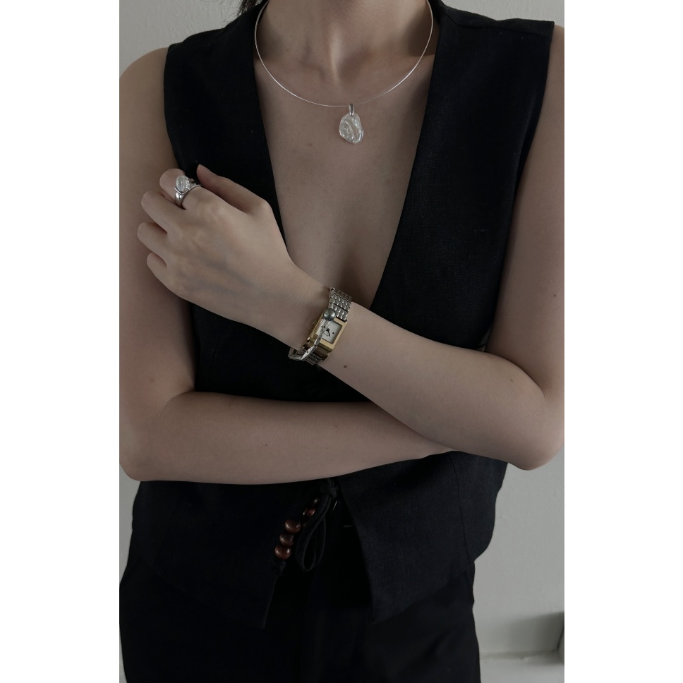 605 Petal pearl and silver collar necklace (Chain length: 40cm)