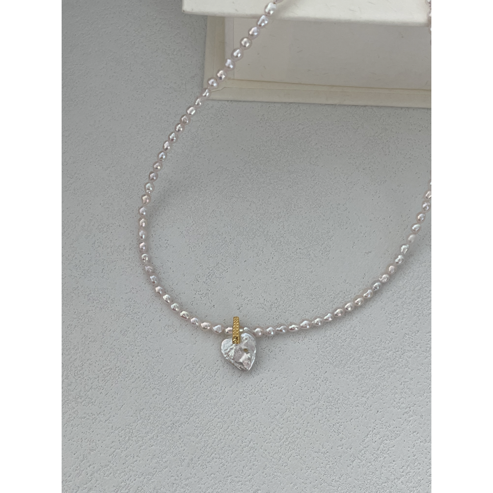 608 Fairy pink love heart pearl necklace (Chain length: 39+5cm)