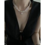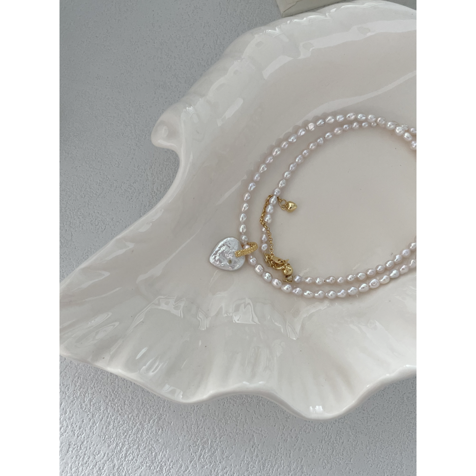652 Double-layer shell and natural pearl necklace (Chain length: 40+5cm)