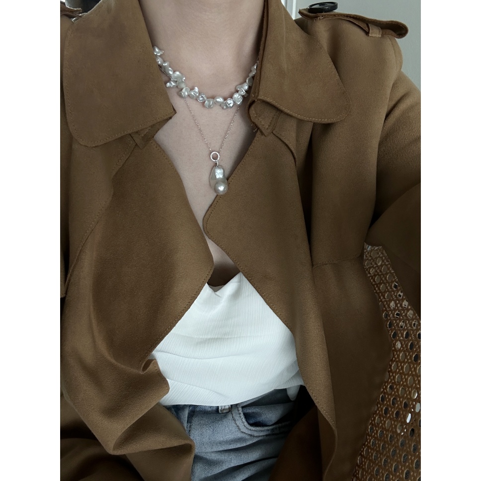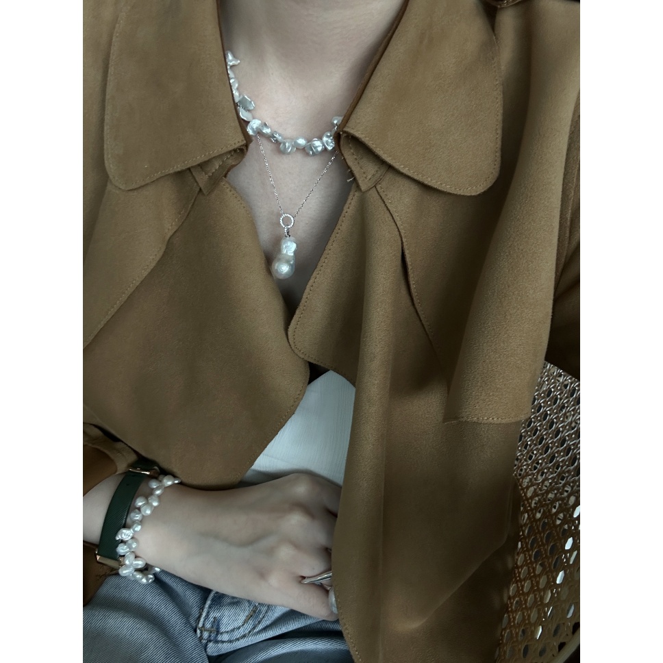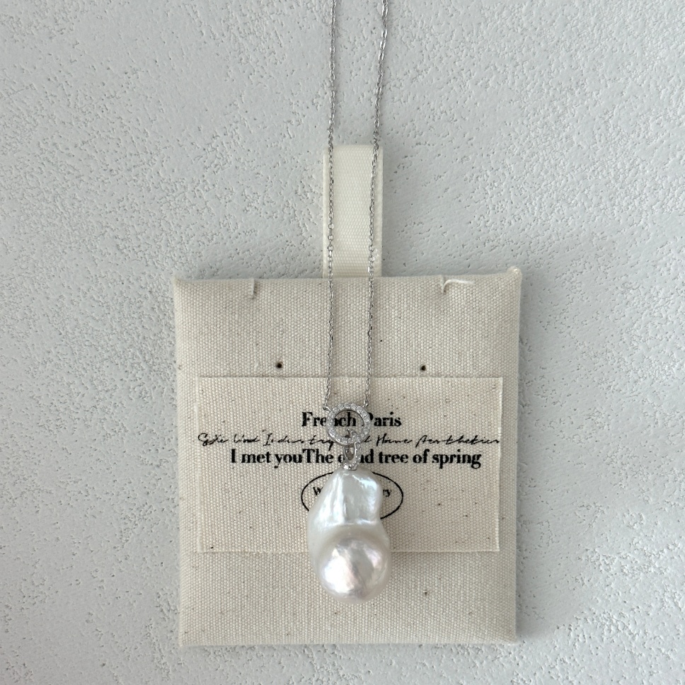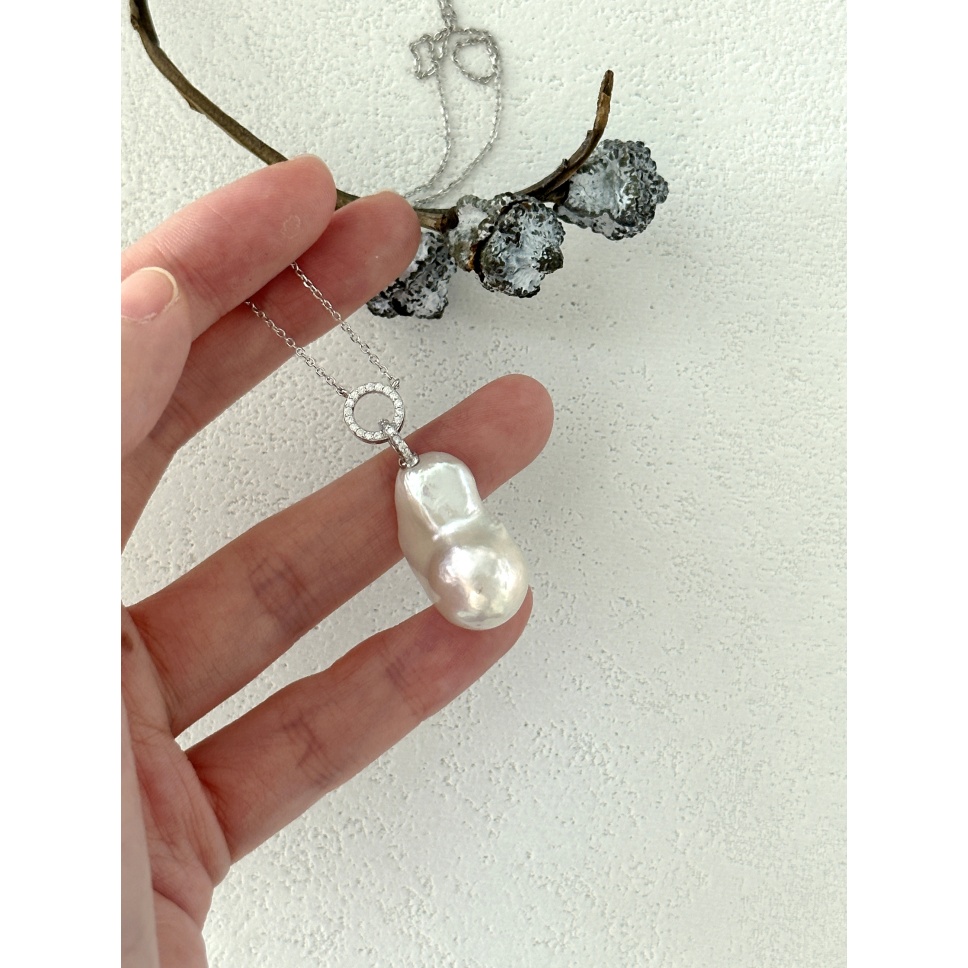 626 Double ring with simulated diamond and large Baroque natural pearls necklace (Chain length: 38-45cm with free buckle)