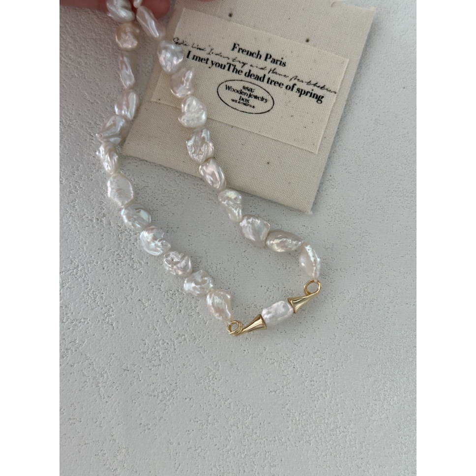 696 Amber large Baroque natural pearl necklace (Chain length: 43cm, square buckle)