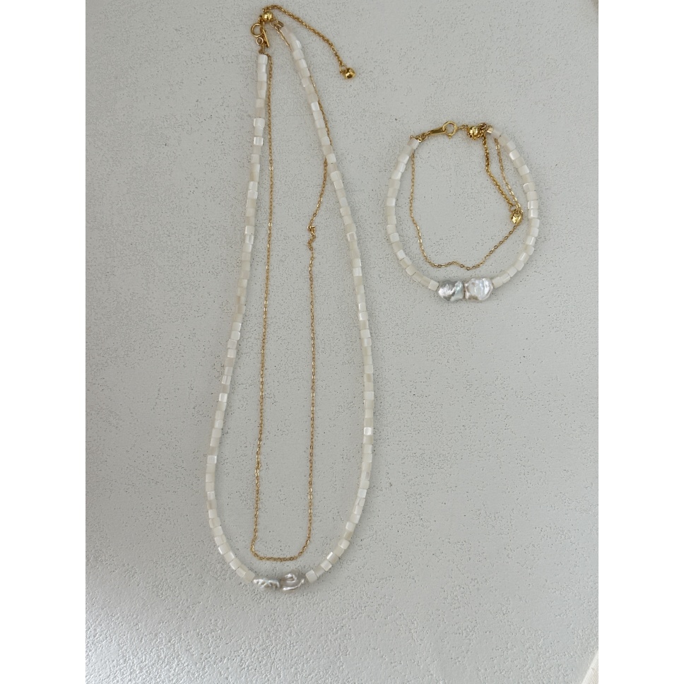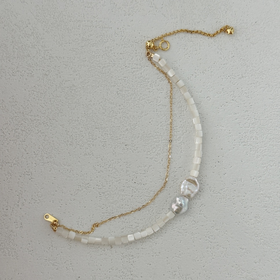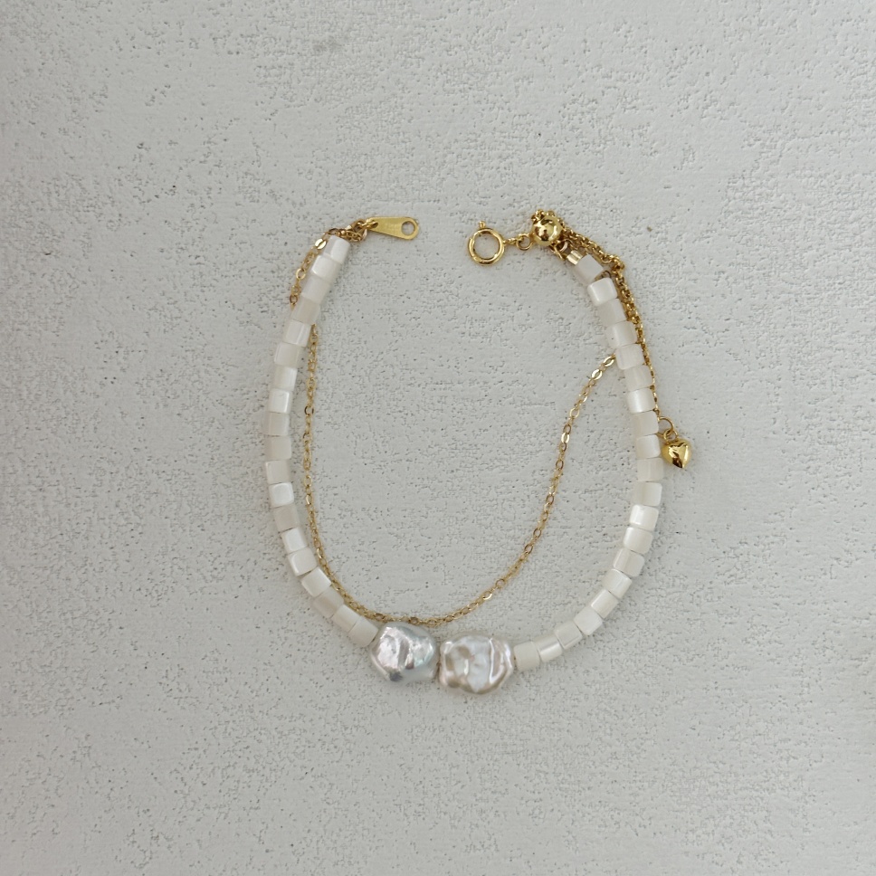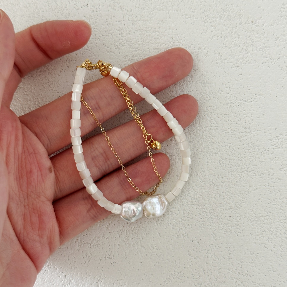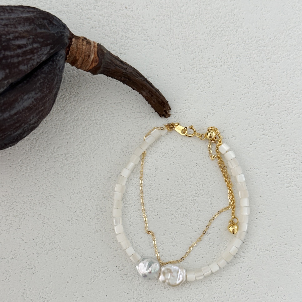 635 Double-layer pearl and shell bracelet (Chain length: 14+5cm)