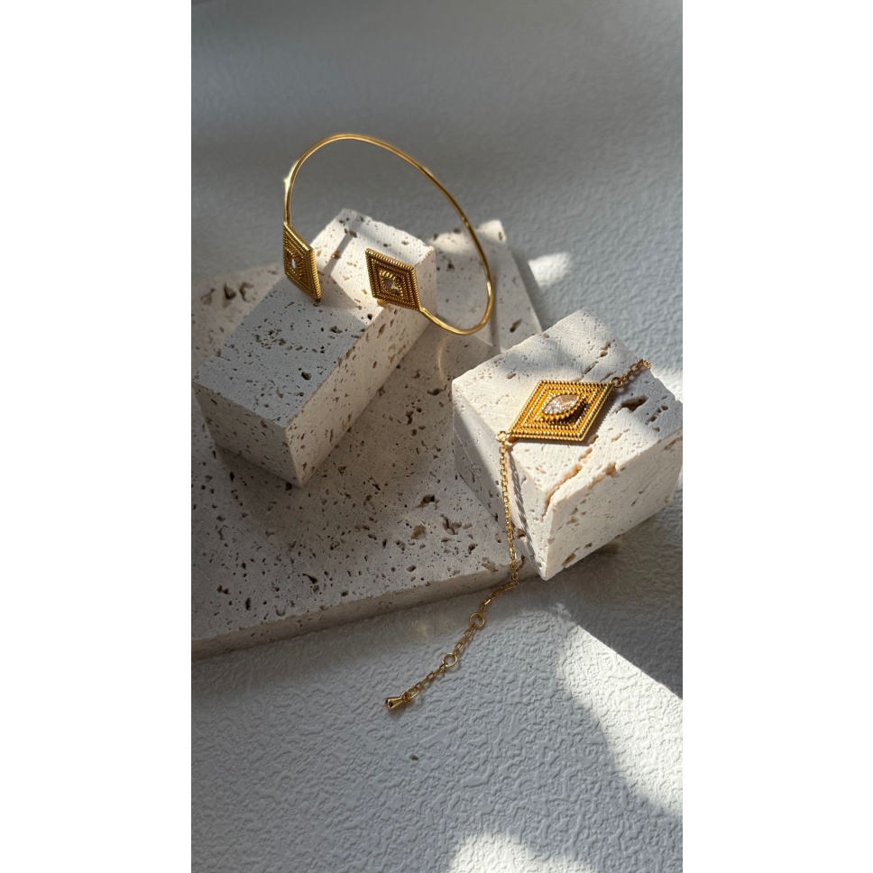 - Materia: Silver plated 18K gold. Chain lengt: 18cm, suitable for hand circumference 14~16cm