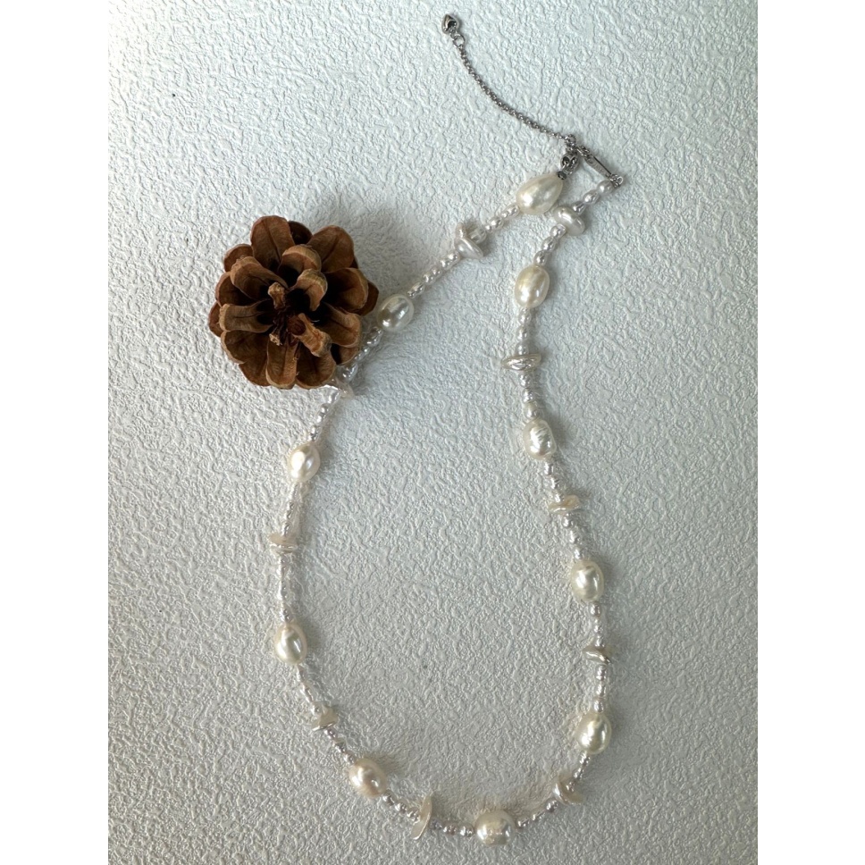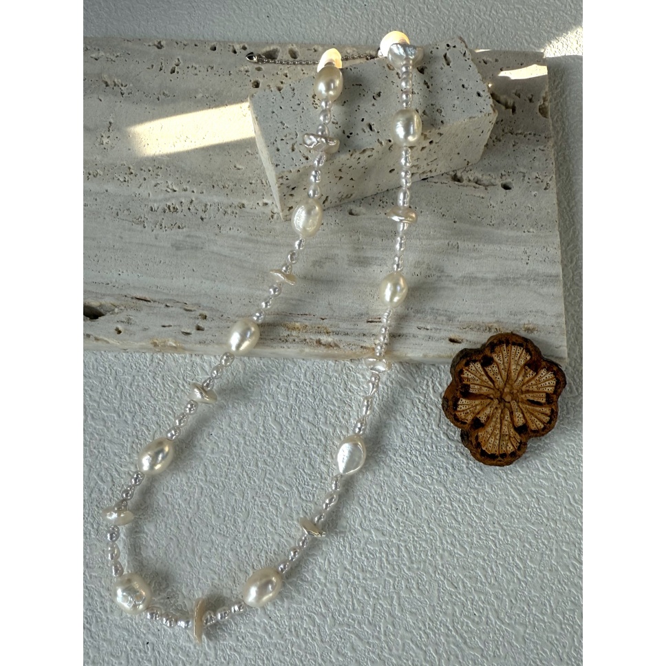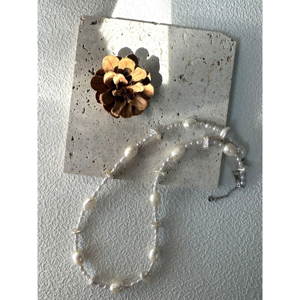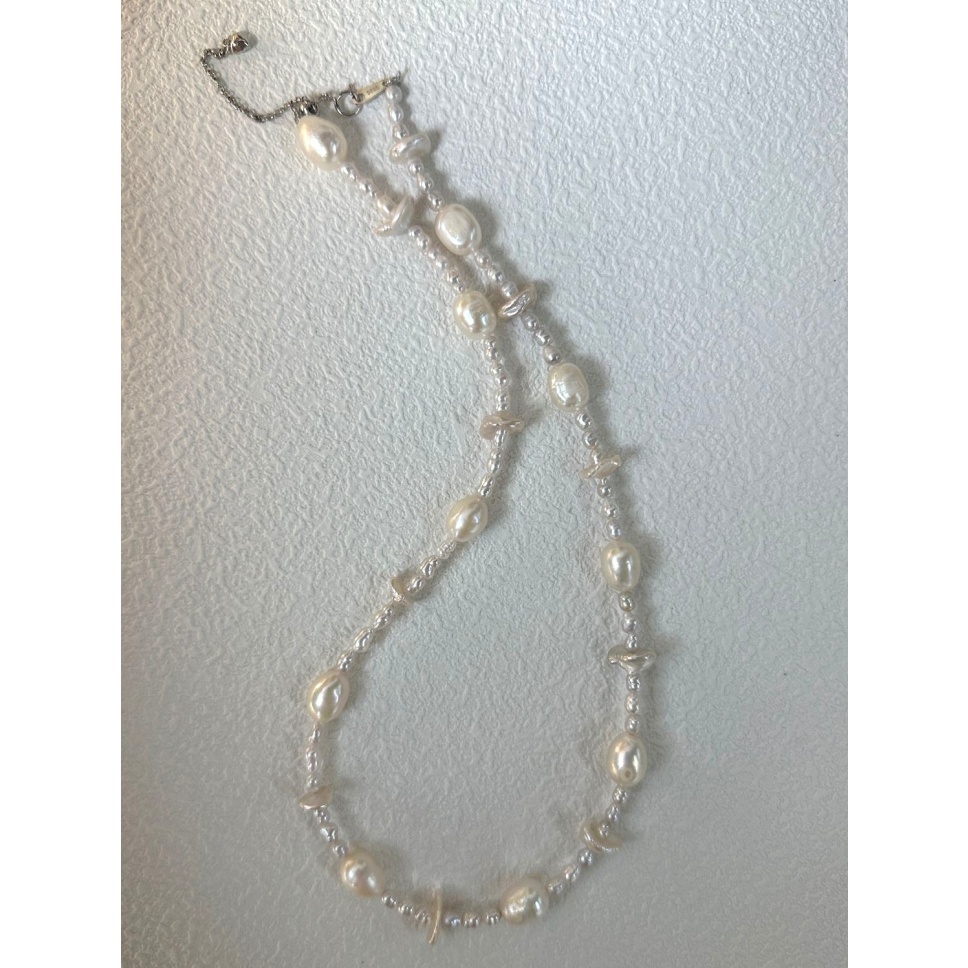 406 Sterling silver large Baroque natural pearl necklace (Chain length: 45cm)