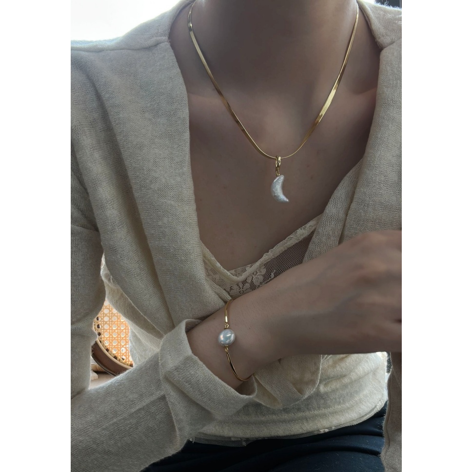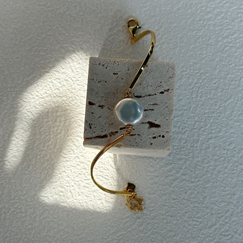 695 Full moon natural pearl bracelet (Chain length: 20cm, adjustable)