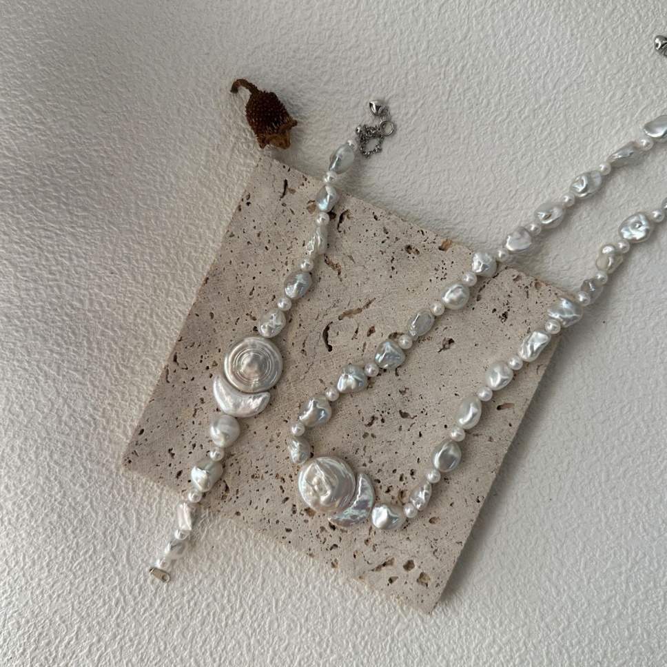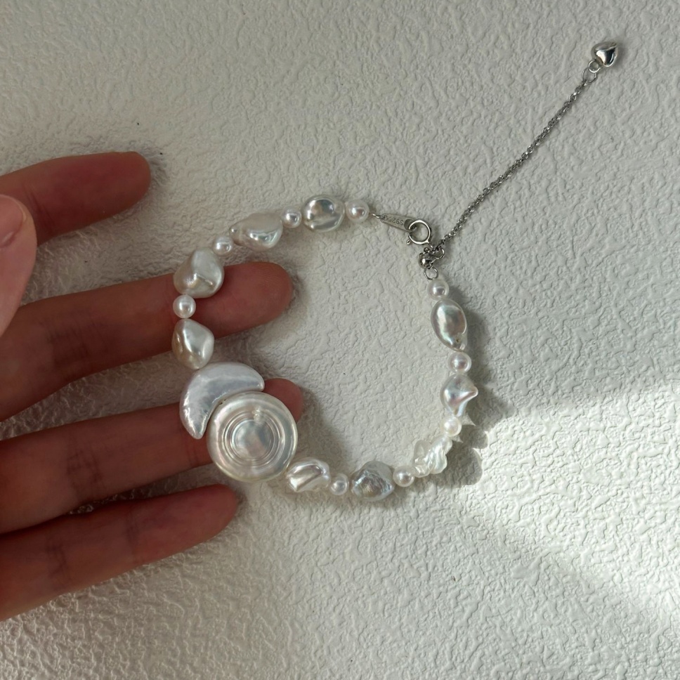702 Sun and Moon Floating natrual pearls bracelet (Chain length: 14.5+5cm)