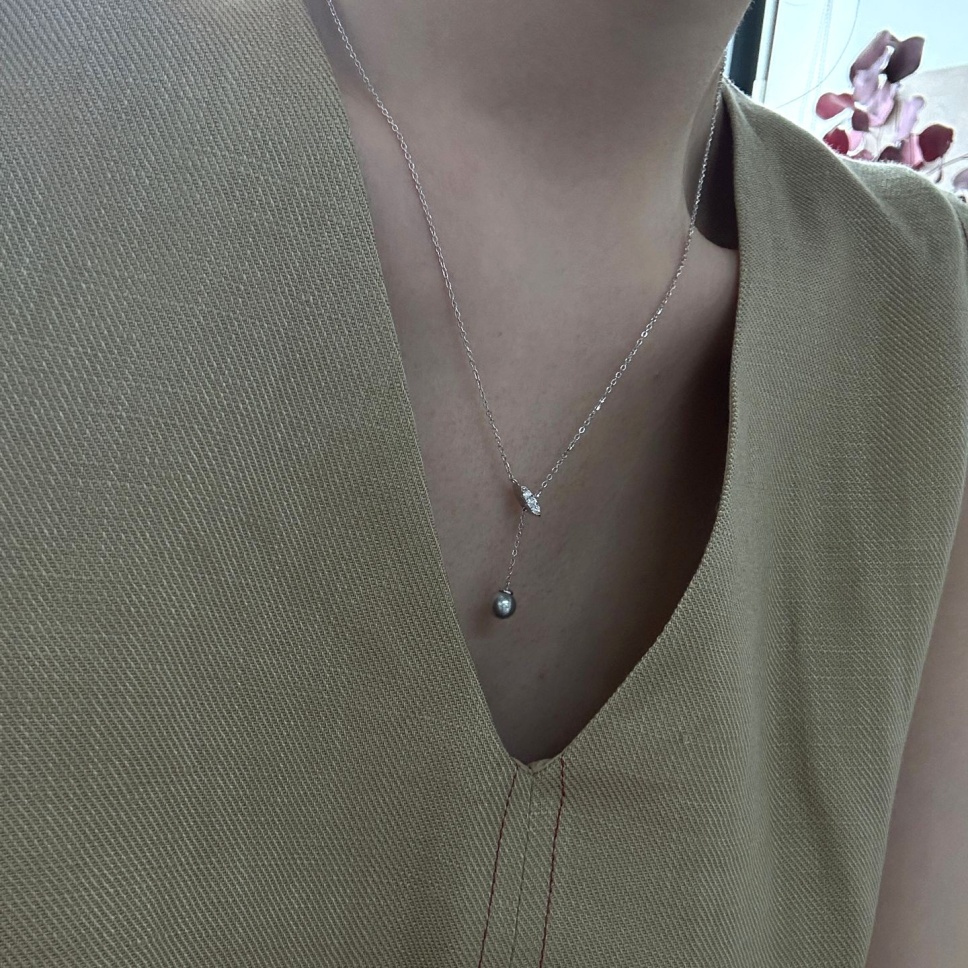 721 Akoya natural pearl Y-shaped necklace (Adjustable chain length: 44+5cm, full length adjustable)