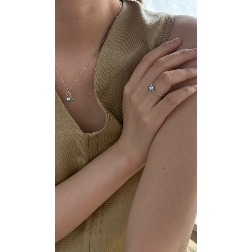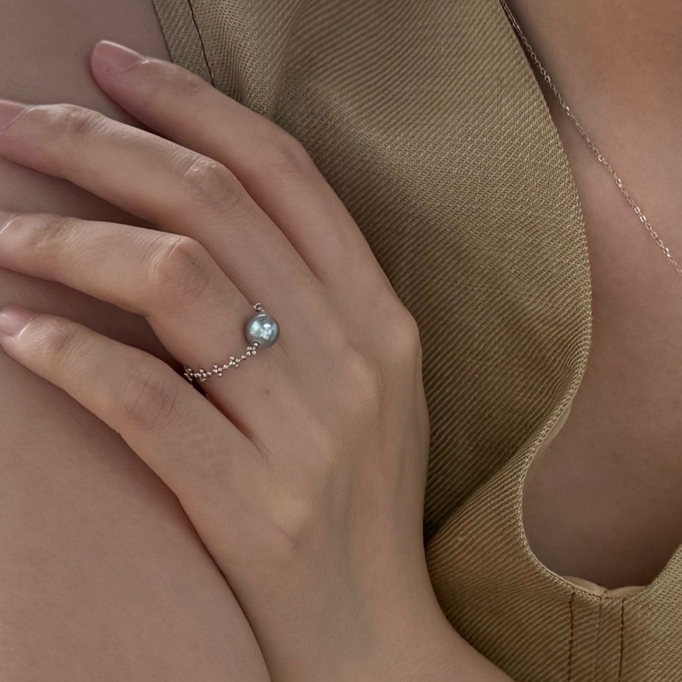 725 Akoya seawater pearl chain ring adjustable size